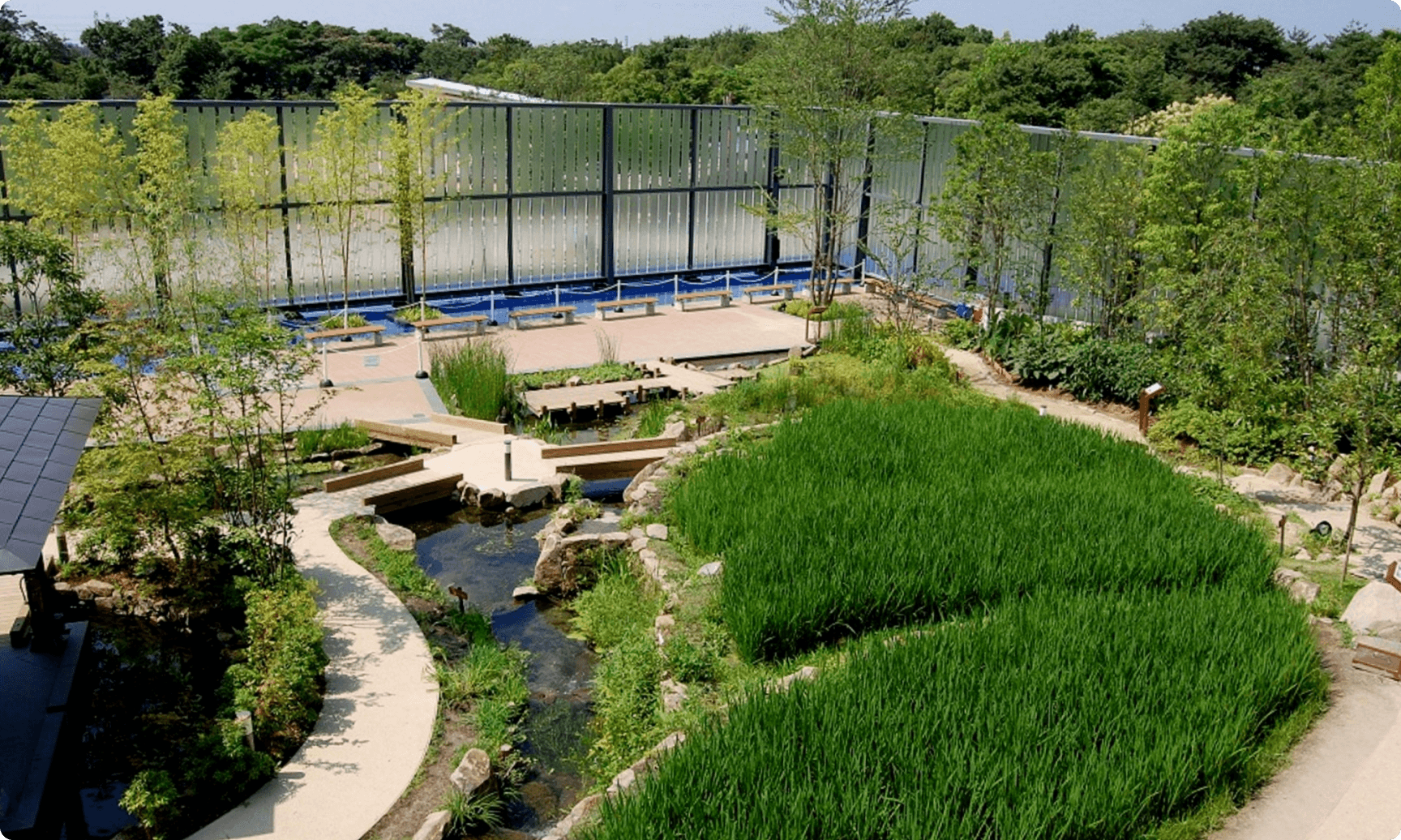 自然豊かな屋外エリアは、都会のそばにあることを忘れてしまうほど。天気の良い日には散策にもぴったりです。