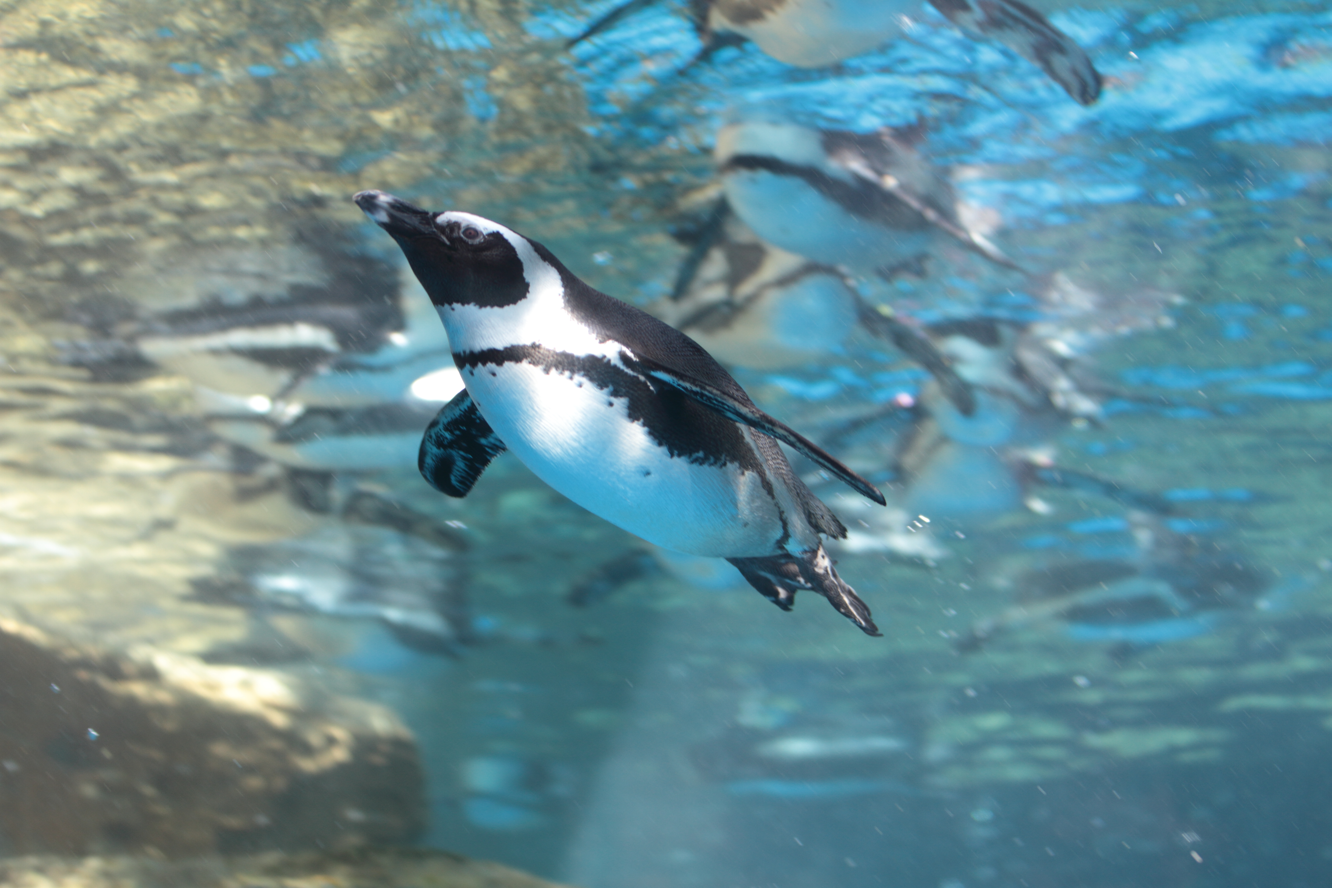 胸に黒い帯があるのが特徴。野生下では、名前の通り南アフリカの“ケープタウン”周辺で暮らしており、近年その数を減らし、現在は国際自然保護連合(IUCN)のレッドリストにおいて極めて絶滅リスクが高い種のひとつに分類されている。