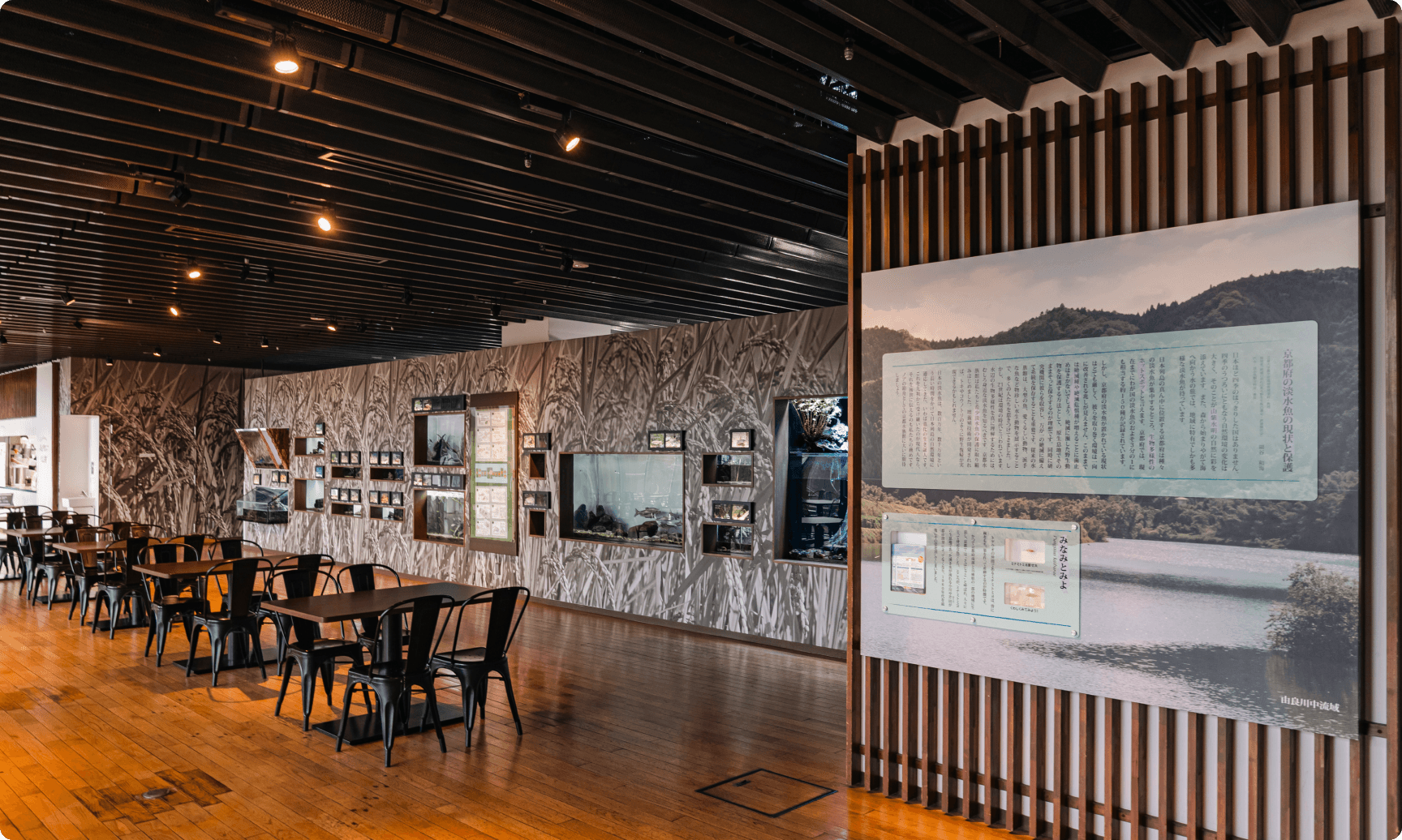京都の美しい自然と、水の都がはぐくんだ水辺にすむいきものを展示する「山紫水明」エリア。