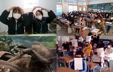 毎年それぞれの小学校に出向いて授業を行っていましたが、2020年、2021年度は京都水族館と小学校をつないでリモートで行いました。