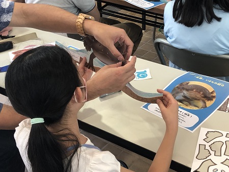オオサンショウウオ、オオサンショウウオ幼生、コブダイ、ニシキテグリの4種類のうち、1種類を作っていただきました。