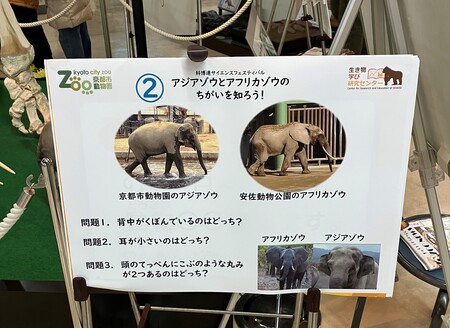続いては、京都市動物園のブースです。「キリンとゾウのこと、どれだけ知ってる?」と題したクイズでは、アジアゾウとアフリカゾウの違いなどを京都市動物園のスタッフさんに解説していただき、キリンとゾウについて知ることができました。