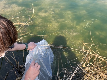 京都水族館から約1時間半かけて大切に運んできたサケの稚魚。もうすぐ放流です。