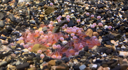 一斉に泳ぎだすサケの稚魚。大きくなって帰ってきてね!