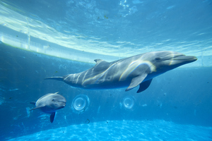 2022年9月30日、ハンドウイルカの男の子が誕生しました。「地域の方々をはじめ、多くの方に末永く、親しまれ愛される存在に」という願いを込めて、京都の伝統産業のひとつである西陣織の品種「紬」から、ツムギと命名しました。