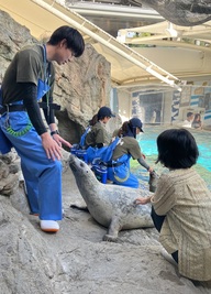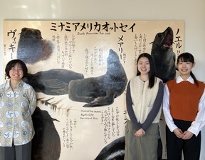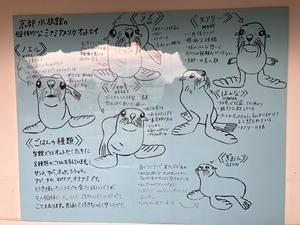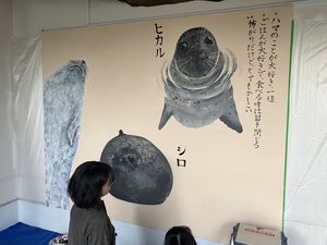 京都水族館のオットセイ・アザラシエリアには、個体の特徴を描いたイラストボードがあります。このたび、京都市立芸術大学の学生3名にご協力いただき、イラストボードが新しく生まれ変わりました。