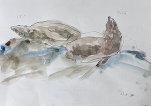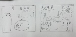 オットセイの親子、メアリー(母)とはんな(娘)のスケッチ