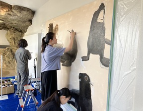 厳しい残暑が続いた9月中旬、展示エリアでイラストの制作がスタートしました。