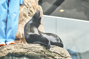 京都水族館のオットセイエリア・アザラシエリアには、6頭のミナミアメリカオットセイと3頭のゴマフアザラシが暮らしています。いきものたちは、見た目はもちろん、好みのごはんや仕草など特徴が異なります。そんな個体ごとの特徴を紹介するイラストボードを掲示しています。
