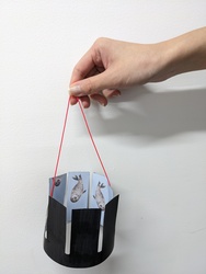 泳いでいるアザラシのイラストが描かれた8個のパーツを順番に台紙に貼り、輪になるように留めます。そして、最後に紐をつけるとゾートロープの完成です。