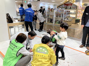 2023年10月17日(火)~10月24日(火)の期間、京都市動物園・京都市青少年科学センター・京都府立植物園・京都水族館の4園館、さらに、きょうと生物多様性センター、京都市都市緑化協会が連携し、京都髙島屋5階のこどもフロアでいきものについて学べるブースを出展しました。10月21日(土)には、6園館が集い、お客さまと一緒にさまざまなワークショップを行いました。