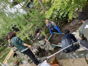 そして、京都水族館からはカワバタモロコを提供。5月初旬、カワバタモロコ84個体を京都薬用植物園内の「いきもの共生エリア」に搬入しました。