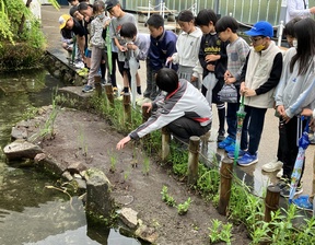そして、「京の里山」エリアに新たに展示した水生植物も観察しました。