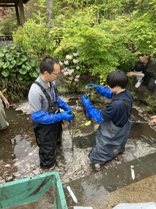 オグラコウホネの植え付けのようす