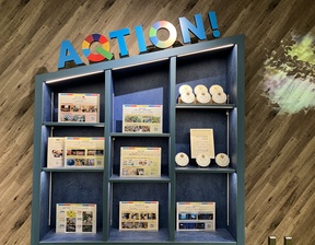 京都水族館では、子どもたちや地域社会と一緒に未来の地球にバトンをつなぐ活動「AQTION!」に取り組んでいます。当館のAQTION!活動をより知っていただきたくことができる棚がミテッテに登場しました。