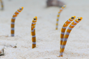 「交流プラザ」では、チンアナゴやニシキアナゴ、クマノミなど珊瑚礁のいきものをご覧いただきました。リニューアルした「ミテッテ」は、これまでご覧いただいてきた珊瑚礁のいきものの展示に加え、さまざまな展示が新登場。いきものたちをたくさん観察してほしい、新しい展示をじっくり見て京都水族館のことを知ってほしい、そんな想いを込めて“ミテッテ”というエリア名に変わりました。