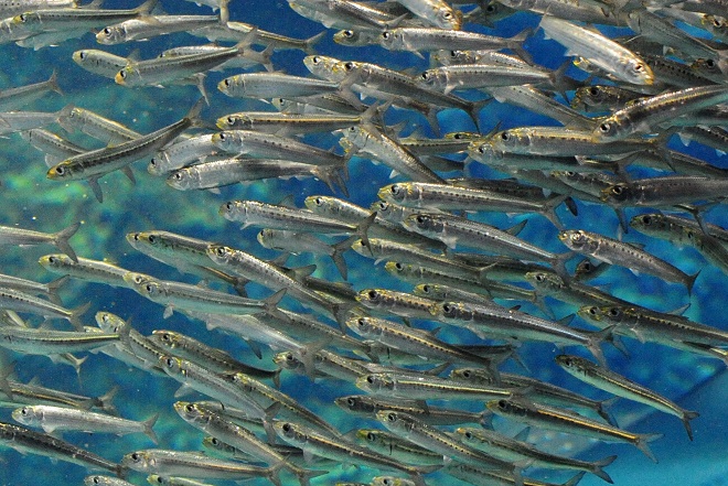ハンドウイルカたちはサンマやアジ、サバやイカといったごはんを1日に約15キロを毎日食べています。かなりの量ですね。