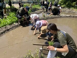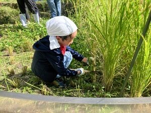 「里山教室」では、日常的に自然に触れる機会が減ってしまった子どもたちに稲作体験を通して田んぼや里山のいきものに触れることで、身近な自然環境を見つめ直して欲しいという思いを込めて毎年開催しています。今年の里山教室でも、はじめて田植えをした、稲刈りが楽しかった、しめ縄を作れて自分の家に飾れるのが嬉しいなど、体験を満喫したさまざまな感想が寄せられました。