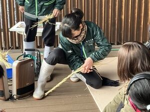 飼育スタッフがキレイな形のしめ縄を作るポイントを伝えながら実演でレクチャーしました。