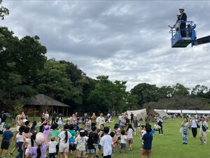 京都府立植物園は、高所作業車からのタネ飛ばし体験を実施。歩くことができない植物がどのように分布を広げるのか、体験を通して学んでいただきました。