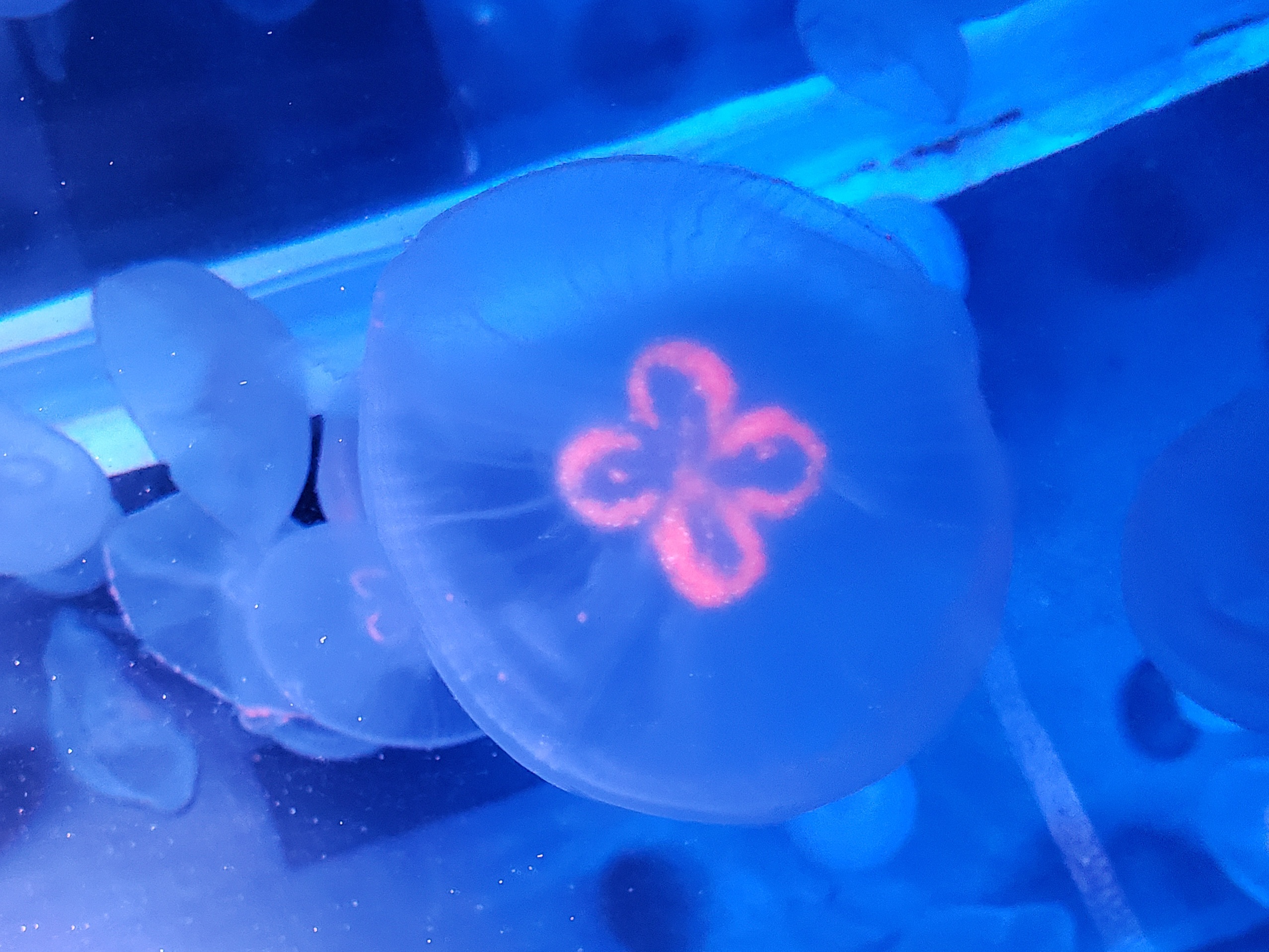 クラゲの水槽というとなんとなく眺めることが多く、クラゲの体に着目してじっくりと観察することは意外とないのではないでしょうか?ミズクラゲの体は一般的で分かりやすい構造をしているので、よくクラゲの体の解説で例として紹介されがちですが、改めて見ていきましょう。