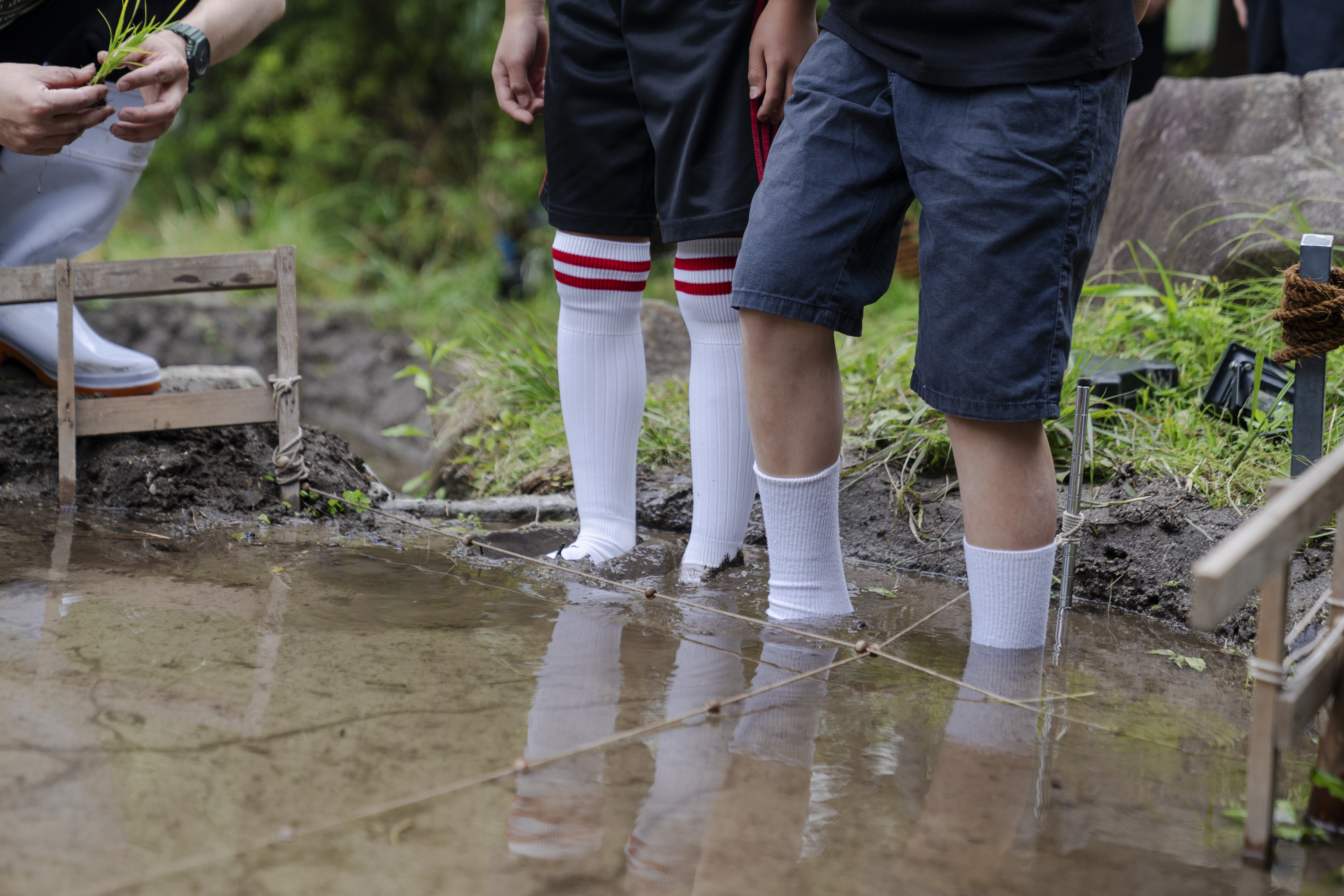 腰を曲げて低い姿勢での作業は思った以上に体力を使い、田んぼ全体を植え終わる頃には、参加者たちから「疲れたー!」という声も。