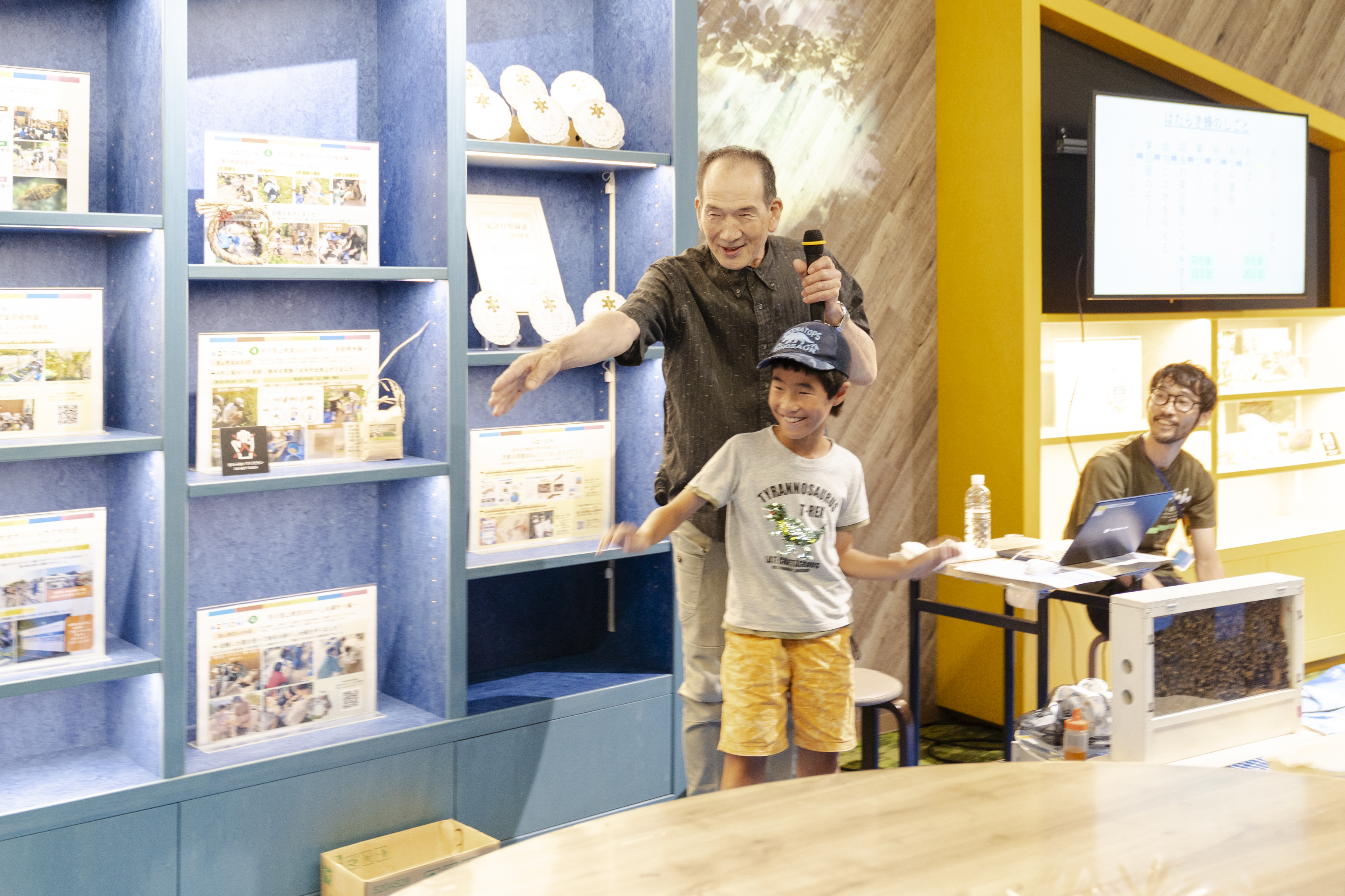副館長とのトークセッションや、ハチ同士のコミュニケーション方法のひとつである「ミツバチダンス」の実演解説もあり、会場は大いに盛り上がりました。