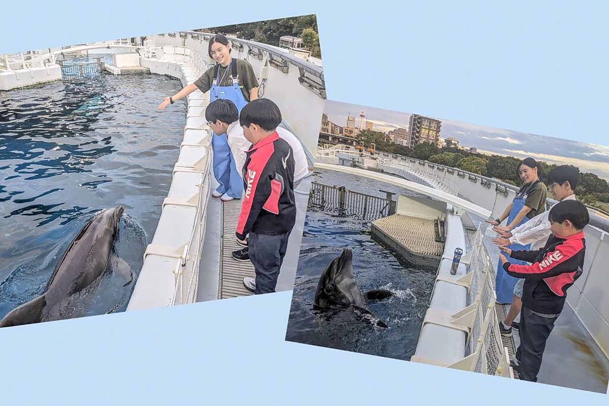 バックステージでイルカを見ながら、京都水族館のイルカたちの個性やそれぞれの関係をトレーナーが解説します。