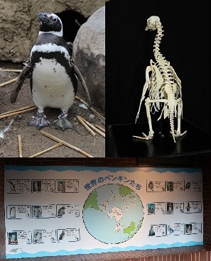展示の工夫:全種(18種)の生息分布図パネルの展示や、マゼランペンギンの骨格標本の展示を行っています。
