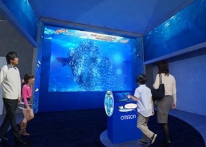 特設ブースとして、オムロン株式会社が提供する、一万匹以上のイワシの映像が本物さながらにモニター内の水槽を群れで泳ぎまわるコンテンツ「デジタルいわし」が登場します。AIデータによりイワシが一匹ずつ制御されており、参加者は設置されたハンドルを操縦することでイワシの群れを動かすことができます。司会とスタッフが掛け合いをしながら仕組みを分かりやすく解説し、最新のテクノロジーを学ぶことができます。