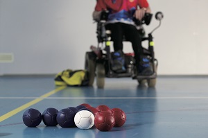 ヨーロッパで身体が不自由な方のために考案されたスポーツ「ボッチャ」を体験することができます。目標となる白いボールに、赤・青のそれぞれ6球ずつのカラーボールを投げたり、転がしたり、他のボールに当てたりなど、いかに近づけるかを参加者同士で競います。