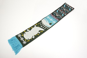 また、同日よりクリスマス限定のマフラーを巻いた全長約130センチの「マフラー付きオオサンショウウオぬいぐるみ」を150個販売します。今年は深緑色をベースに、オオサンショウウオや雪の結晶、クリスマスツリーなどの冬を連想するモチーフがポイントです。