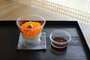 どんぶり料理のいくら丼をスイーツで再現した、期間限定メニューです。白米部分をミルクプリン、いくらはオレンジ色のタピオカで表現し、醤油に見立てた黒蜜をかけてお楽しみいただけます。