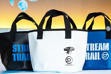 Stream Trailと「見上げる! MANTEN くらげルーム」がコラボしたオリジナルミニトートバックを人数分ご用意します。抜群の強度と防水性を兼ね備えたターポリン素材を使った防水バッグです。