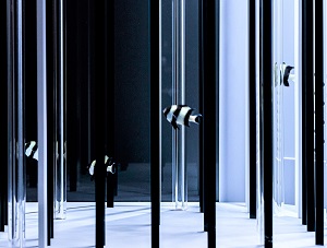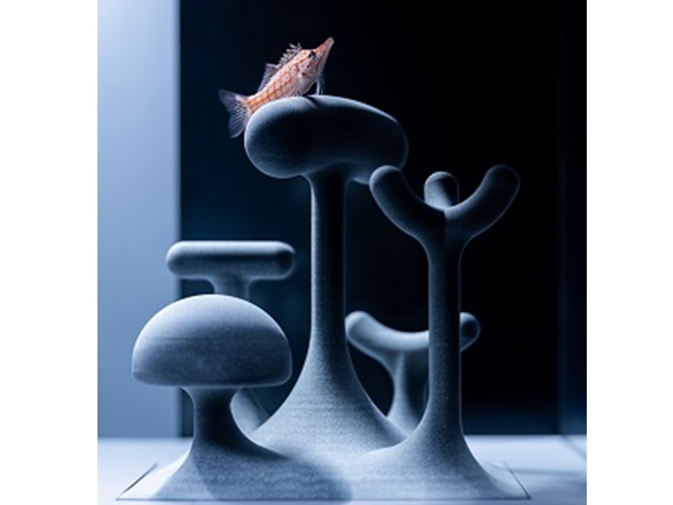 暗い所で群れで暮らす習性から、安心して暮らせるようたくさんの影ができるような段々状のオブジェを設置。