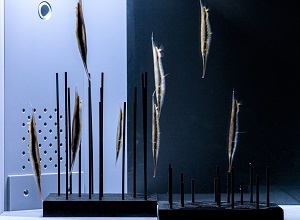 いきものの形や色、模様は、棲んでいる場所やその習性などに基づいています。いきものたちの「カタチ」の由来がわかる「くらし」の特徴を、「ぐるぐるの家」「だんだんの家」などテーマを設けた独創的なデザインで表現し、「ミスジリュウキュウスズメダイ」や「ビッグベリーシーホース」など、6種類の個性豊かで小さないきものたちを、6つの水槽で展示します。