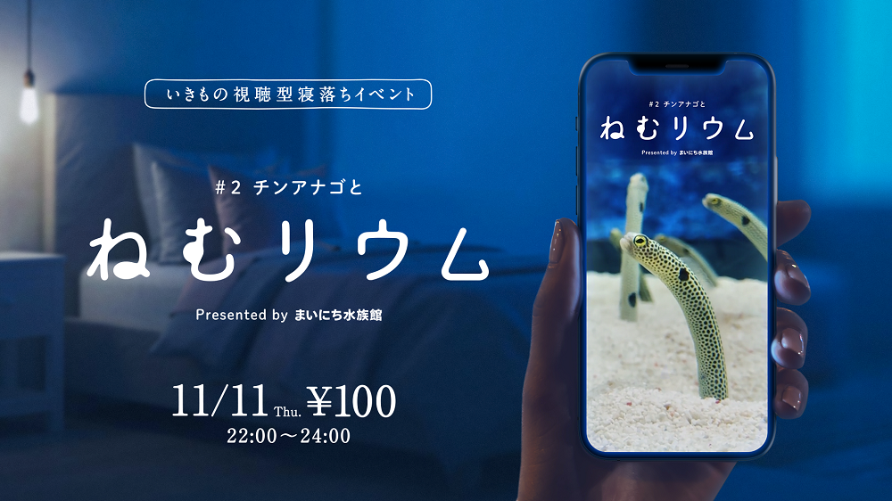 すみだ水族館(所在地:東京都墨田区、館長:中村 雄介)と京都水族館(所在地:京都市下京区、館長:松本 克彦)は、オンラインで水族館の新しい楽しみ方を提供するサービス「まいにち水族館※1」のコンテンツとして、11月11日(木)の「チンアナゴの日」に、睡眠導入ライブ中継「チンアナゴとねむリウム」を開催しますのでお知らせします。