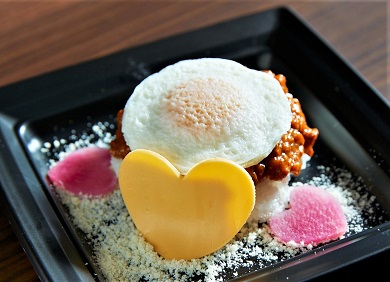 おせち料理が続いたお正月明けなどにぴったりなスパイシーカレーが登場します。ハート形にくり抜いた鮮やかな紅色の紅芯大根とチーズをトッピングし、上に目玉焼きを乗せたボリューム満点のキーマカレーです。寒い時期に嬉しい、温かくスパイシーな味をお楽しみください。
