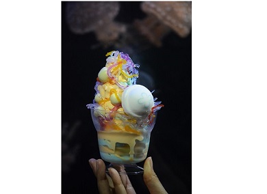 丸みを帯びた姿に水玉模様が特徴のタコクラゲをモチーフにした限定メニューが登場します。淡い黄色のタコクラゲを表現した夕張メロンと、透き通る水をイメージしたラムネのミックスソフトクリームに、タコクラゲの水玉模様をお麩ショコラで、触手を海藻麺で表現しました。クラゲの形のマシュマロをトッピングし、見た目も味も暑い夏にぴったりの爽やかな一品です。