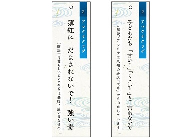 クラゲ展示エリア「クラゲワンダー」に展示している約30種※のクラゲを中心に、21種類のクラゲをモチーフに制作した「クラゲ風鈴」を展示します。風鈴は、新潟のガラス工房「TAKU GLASS」が制作。風鈴から吊るす短冊には、飼育スタッフが作成したクラゲにまつわる川柳42種類をお楽しみいただけます。色や形、触手の長さなど、種類ごとに特徴が異なるクラゲの多様性や魅力を伝えたいという飼育スタッフの思いと職人技が融合しました。