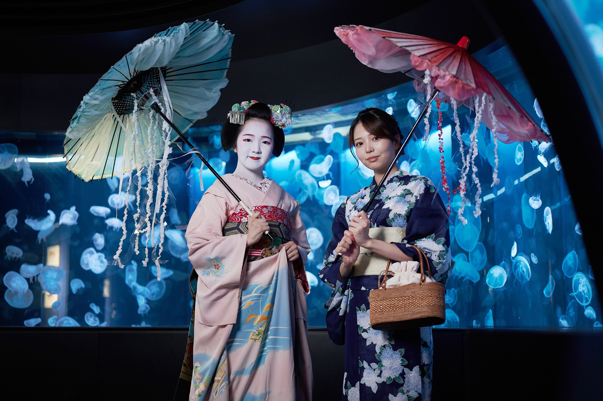本イベントは、京都のいきものや自然を楽しめる当館で、京都の魅力を再認識していただけるよう企画しました。京都の伝統文化を次世代につなぐ活動をしている「株式会社 弘庵」(本社:京都市、代表:宮本 一希)とタイアップし、京都の海を再現した「京の海」大水槽と、京の伝統文化「舞妓」のコラボレーションで、幻想的な時間をお届けします。このたび披露する舞は「祇園小唄」という、舞妓が最初に覚える花街では有名な演目です。さらに、期間中1日3回、各回50組限定で、舞妓と記念撮影ができる写真撮影会(有料)を実施します。約30種5,000匹のクラゲを展示する「クラゲワンダー」エリアなど、京都水族館ならではの背景で、普段ふれる機会の少ない舞妓との撮影をお楽しみいただけます。