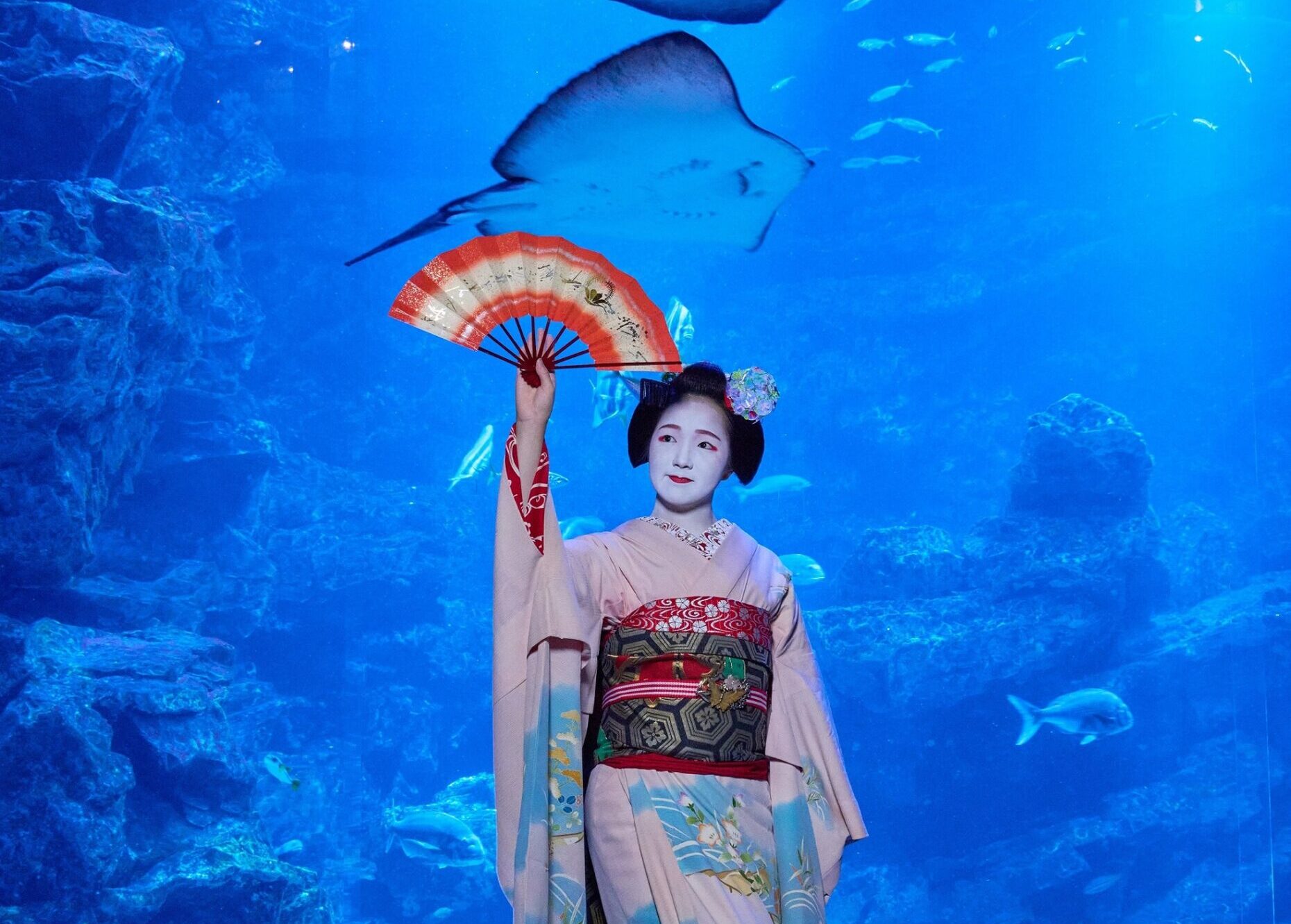 舞妓が「京の海」大水槽前で舞を披露 「舞妓 -花の刻(とき)-」を7月16日(土)より開催