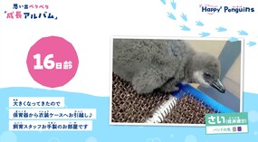 「さい」は孵化後、人工育雛により育てられていましたが、現在は「ペンギンエリア」で、「れい」、「みぶ」と一緒に暮らしています。3羽とも魚を丸ごと食べられるようになり、小さなプールで泳ぐ練習をするなど、順調に成長しています。