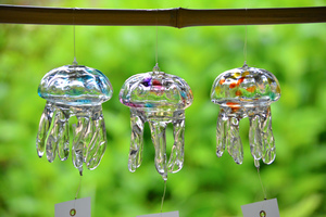 暑さの厳しい京の夏は、「クラゲ風鈴」の色鮮やかな姿と音色で、涼しい気分でお過ごしください。