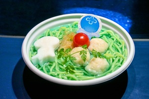 青色のスープがインパクト抜群のラーメンが限定登場。クラゲ型のはんぺんのほか、コリコリとした食感の食用クラゲをトッピングした、クラゲ尽くしなひと品です。塩ベースのスープであっさりとした味わいなので、お子さまもお楽しみいただけます。