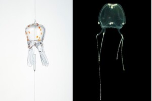 <新たに展示するクラゲ風鈴(左:風鈴 右:クラゲ)>