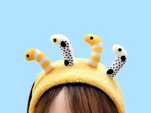 チンアナゴとニシキアナゴが巣穴から体を出しているようすを再現したかわいいヘアバンドが登場。着用すると、チンアナゴとニシキアナゴが2匹ずつにょきっと起き上がるデザインです。自分用はもちろん、お子さまやお友だちへの贈り物にもおすすめです。