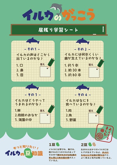 ③放課後もイルカについて学ぼう!「居残り学習シート」にチャレンジ