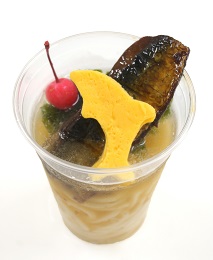 京都名物の一つ「にしんそば」がうどんになって登場。「ニシン」は、当館のイルカたちが食べているごはんの一種です。ニシンの甘露煮をトッピングした暑い夏の日にピッタリな冷たいうどんをご用意します。カップ入りで手軽に「イルカスタジアム」へ持ち込めるので、ぜひ授業プログラム「給食の時間」にご参加いただきながらイルカと一緒にごはんをお楽しみください。