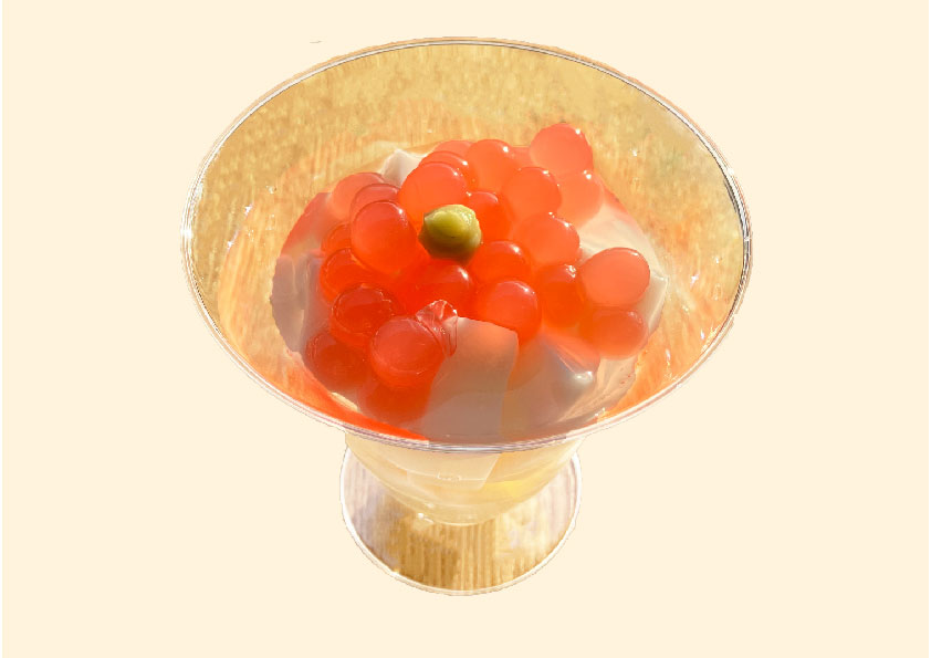 見た目はまるでイクラ丼!?な新感覚スイーツが期間限定登場します。イクラのように見えるのは、ストロベリー味のシロップのコーティングジュースで、口の中でプチっとはじける食感が楽しいひと品です。下層の杏仁豆腐との相性もピッタリで、大人から子どもまで幅広くお楽しみいただけます。